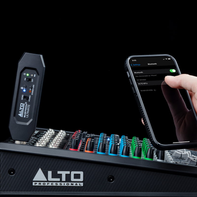 Alto Bluetooth Ultimate es un receptor inalámbrico Bluetooth estéreo recargable equipado con XLR que transmite audio estéreo de forma inalámbrica a mezcladores o recintos autoamplificados.
