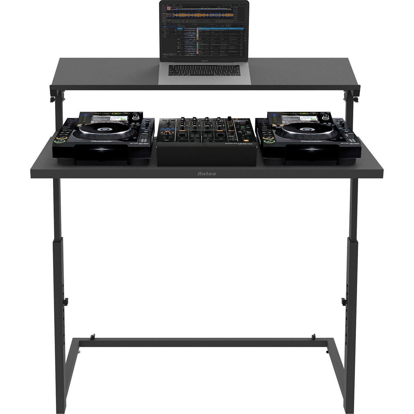 El Antoc DJ-44 es la versión premium del DJS-40 con un estante adicional para el portátil de ancho completo. El estante de 300 mm de profundidad y 1150 mm de ancho ofrece suficiente espacio para un ordenador portátil y muchos otros dispositivos y aparatos.