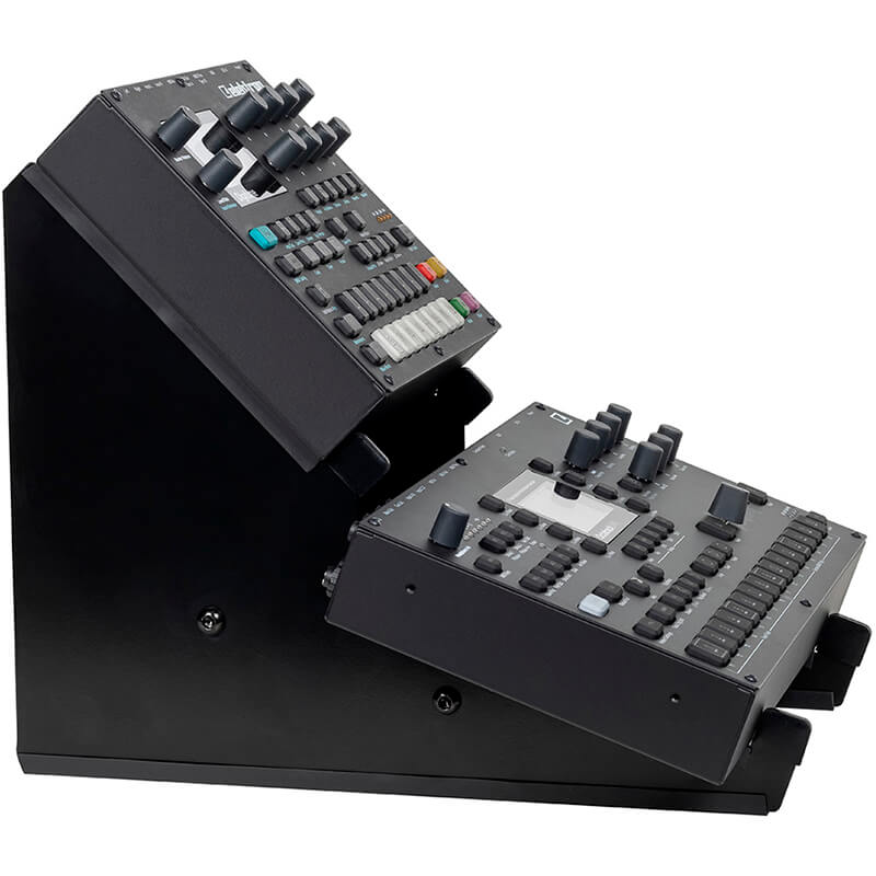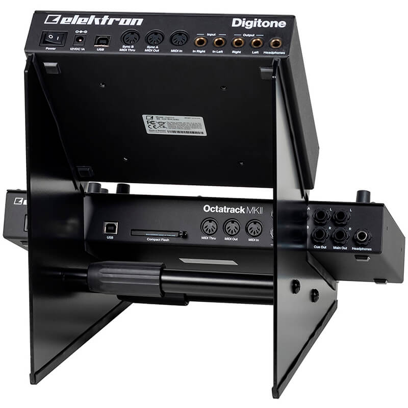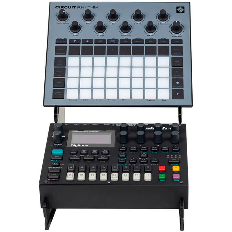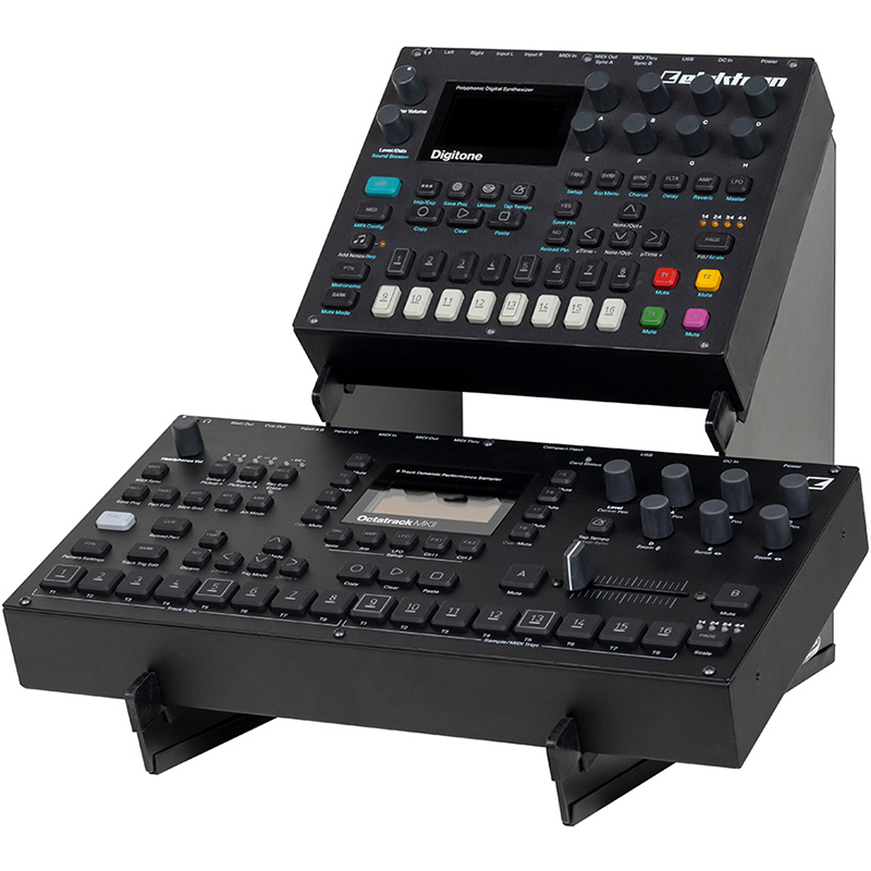 Soporte de escritorio de dos niveles para dispositivos como sintetizadores, controladores, cajas de ritmos y módulos de efectos