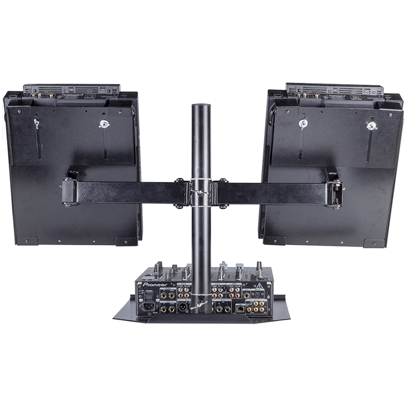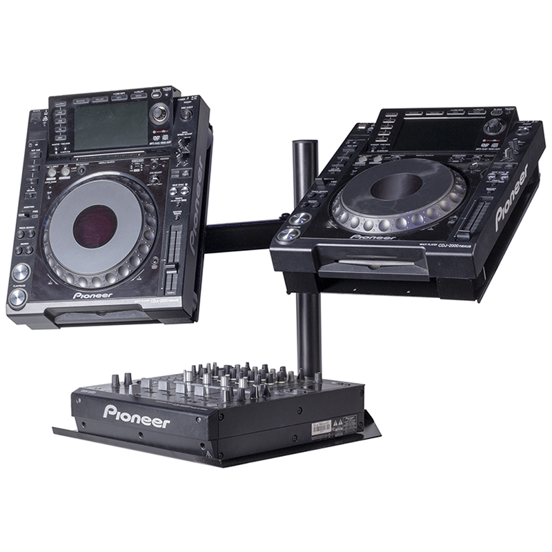 - Soporte doble para CDJ con brazos gemelos ajustables de forma independiente.