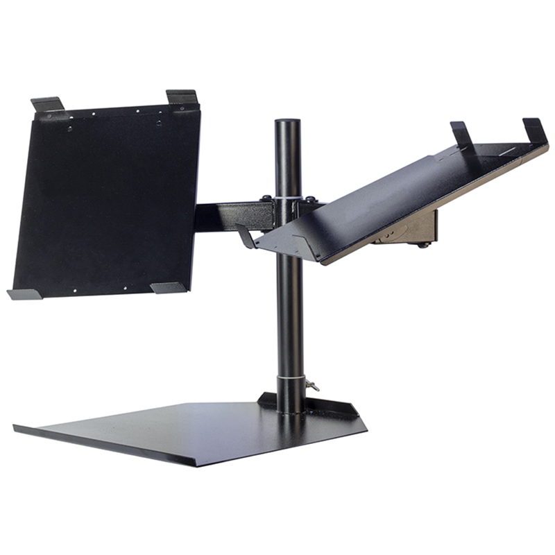 Las bandejas se inclinan y giran de forma independiente y cuentan con labios ajustables en la parte superior e inferior para mantener el equipo en su sitio. Cada una mide 12″ de ancho y tiene un ajuste de profundidad variable de 14″ a 18″, lo que las hace adecuadas para diversos equipos.