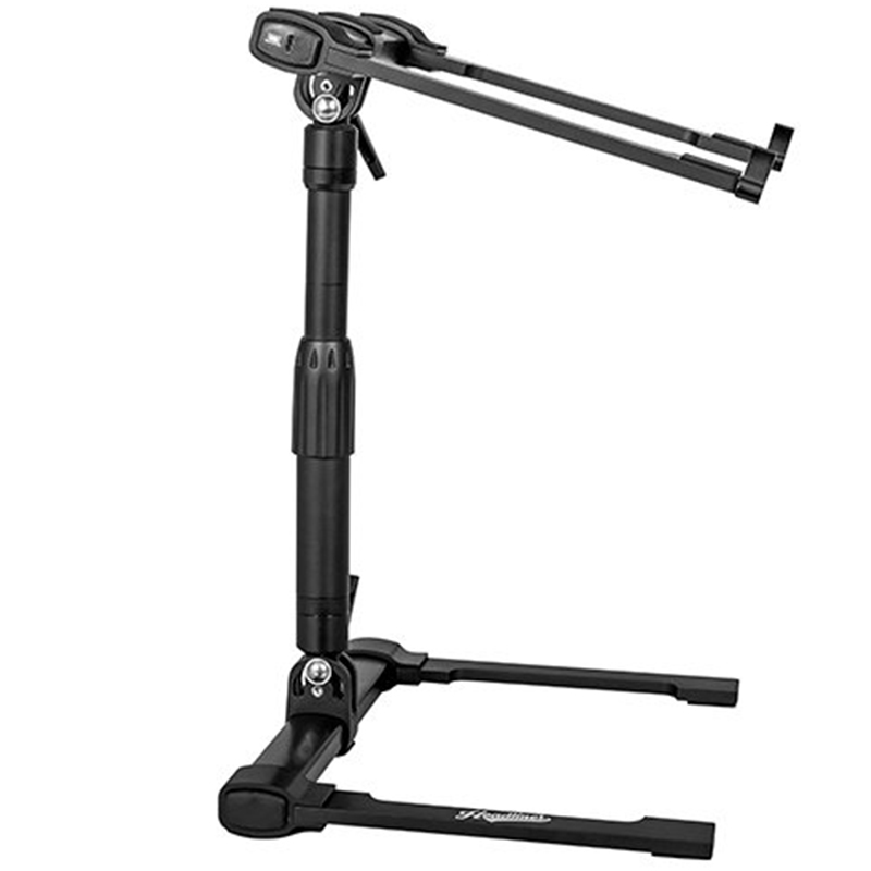 Gigastand USB está fabricado en acero y aluminio para ofrecer la mejor combinación de portabilidad y durabilidad. Es totalmente ajustable, configurable en posiciones C o Z, y se pliega gracias a un intuitivo sistema de palanca de trinquete. Afloja y aprieta fácilmente cada articulación para encontrar el ángulo adecuado para su configuración. El cuello telescópico gira 360˚ y tiene una altura máxima de 16″.