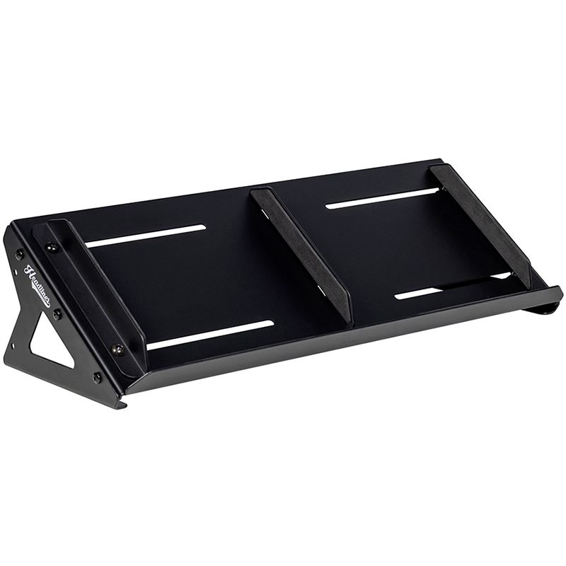 Las bandejas de los soportes ajustables evitan que el equipo se mueva, mientras que un divisor central extraíble se puede usar para colocar 2 dispositivos pequeños uno al lado del otro. La base Headliner Mod está hecha de acero sólido con almohadillas de goma antideslizantes para mantener el soporte en su lugar de forma segura.