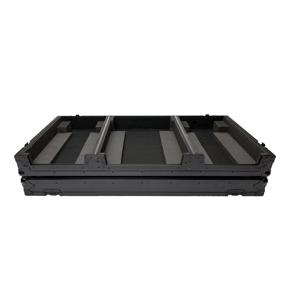 Flightcase para transporte y almacenaje de 2 reproductores y 1 mezclador. Construcción resistente de contrachapado laminado de vinilo de 9 mm. Perfiles de aluminio sólido y cierres de resorte. Espuma adicional para adaptarse a varios modelos de mezcladores y reproductores de CD. 3 cubiertas de panel frontal removibles. Cómodos puertos de acceso a los cables. Interior completamente acolchado. Incluye ruedas empotradas para facilitar el transporte.