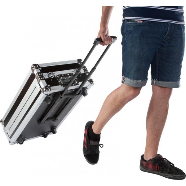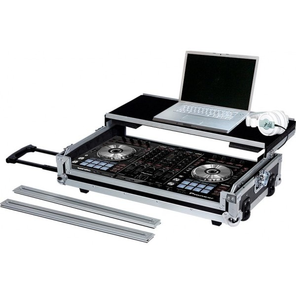 Maleta de transporte WALKASSE WMC-PRO8 para controlador midi DJ de tamaño grande hasta 664 mm (w), con soporte -retráctil- para ordenador portátil, Ruedas empotradas y Asa-retráctil- tipo Trolley.