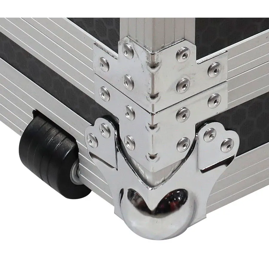 La perfilería de aluminio sólida, confiere un gran rigidez a los flight case Walkasse, acabada en color negro, incorporan el logotipo de WALKASSE para garantizar la máxima duración y el diseño profesional. Este flight case también cuenta con asas profesionales para cargas pesadas, ofreciendo la máxima seguridad durante el transporte.