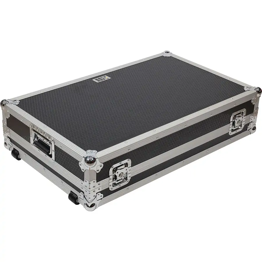 Flight case WALKASSE WMC-PRODJXDJAZ construido en madera contrachapa sólida de 9mm y nueva superficie exterior de escenario con acabado hexagonal tipo nido de abeja de máxima duración. Las partes internas están protegidas con acolchado protector de espuma EVA. Esta espuma acolchada de diferentes densidades protege el equipo de golpes y otros daños.
