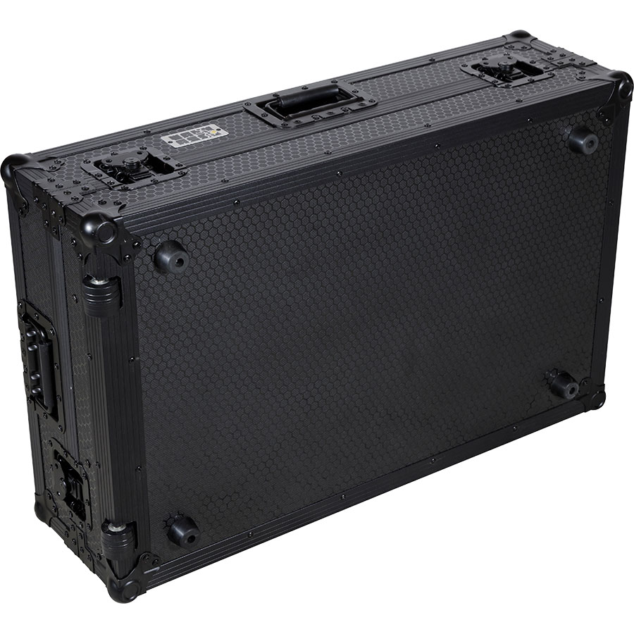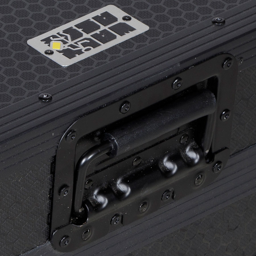 Flight case Walkasse WMC-PROREV7LTSBK construido en madera contrachapa sólida de 9mm y nueva superficie exterior de escenario con acabado hexagonal tipo nido de abeja de máxima duración. Las partes internas están protegidas con acolchado protector de espuma EVA. Esta espuma acolchada de diferentes densidades protege el equipo de golpes y otros daños.