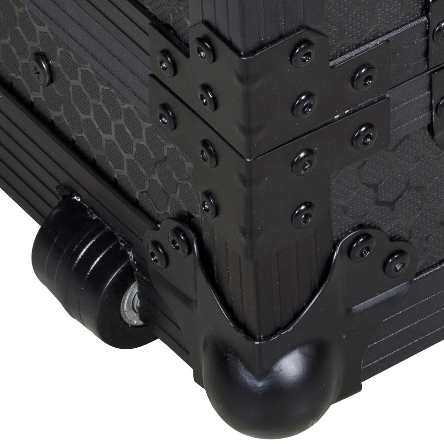 La perfilería de aluminio sólida, confiere un gran rigidez a los flight case Walkasse, acabada en color negro, incorporan el logotipo de WALKASSE para garantizar la máxima duración y el diseño profesional. Este flight case también cuenta con asas profesionales para cargas pesadas, ofreciendo la máxima seguridad durante el transporte.