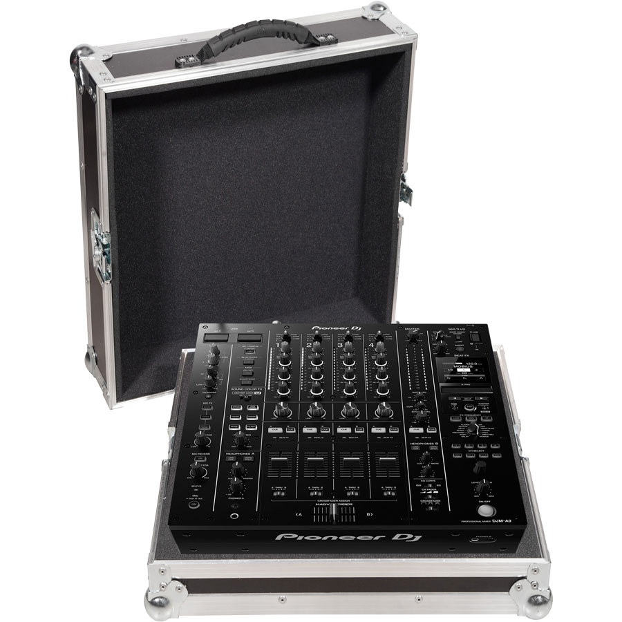 fabricada en España, especialmente diseñada para tu mezclador de directo Pioneer® DJM-A9. Acabado en madera de contrachapado WBP de 100% abedul Finlandés 7mm y perfilería y componentes de aluminio. Acolchado interior realizado en espuma técnica de diferentes grosores dependiendo del producto en su interior acabado con EVA (acolchado de espuma) interior. Hueco interior para cables y otros accesorios..