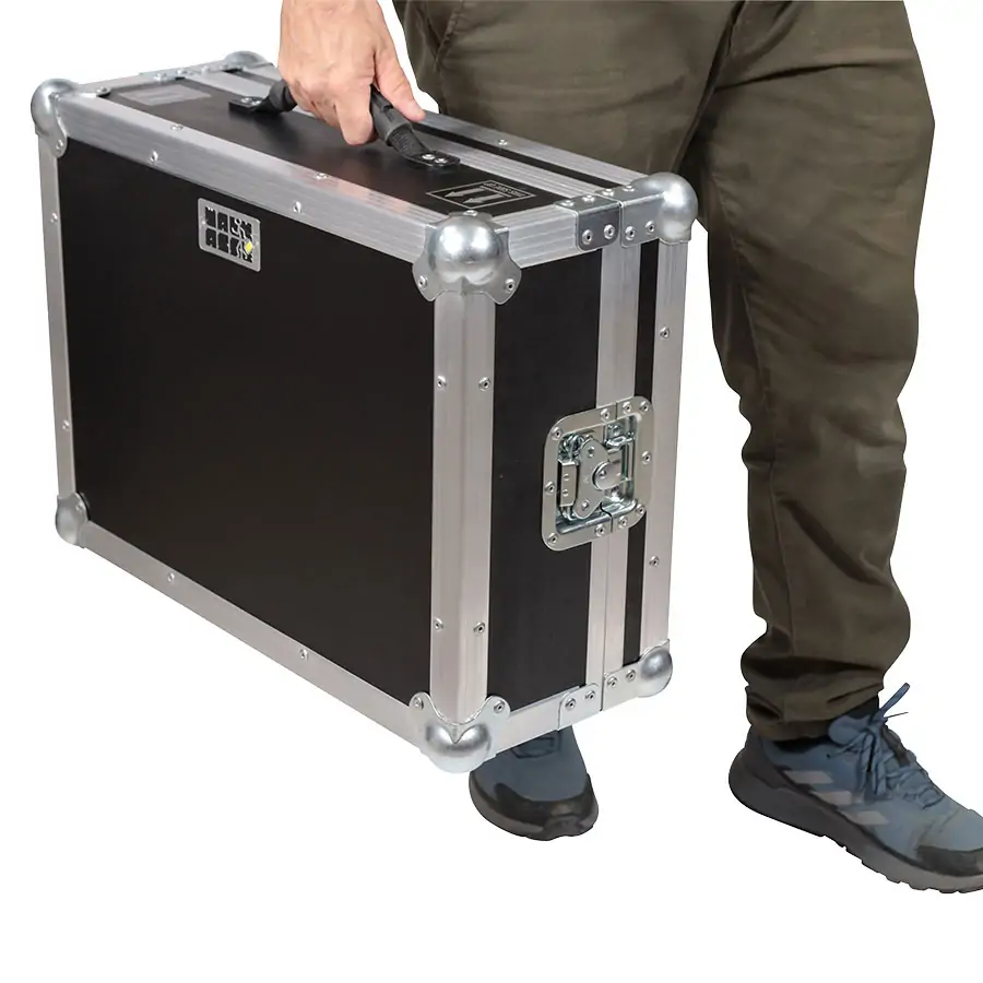 La maleta WALKASSE WC-CDJ3000X-ESP, está fabricada en España, especialmente diseñada para tu reproductor Alphatheta® CDJ-3000X. Acabado en madera de contrachapado WBP de 100% abedul Finlandés 7mm y perfilería y componentes de aluminio. Acolchado interior realizado en espuma técnica de diferentes grosores dependiendo del producto en su interior. Acabado con EVA (acolchado de espuma) interior. Hueco interior para cables y otros accesorios.