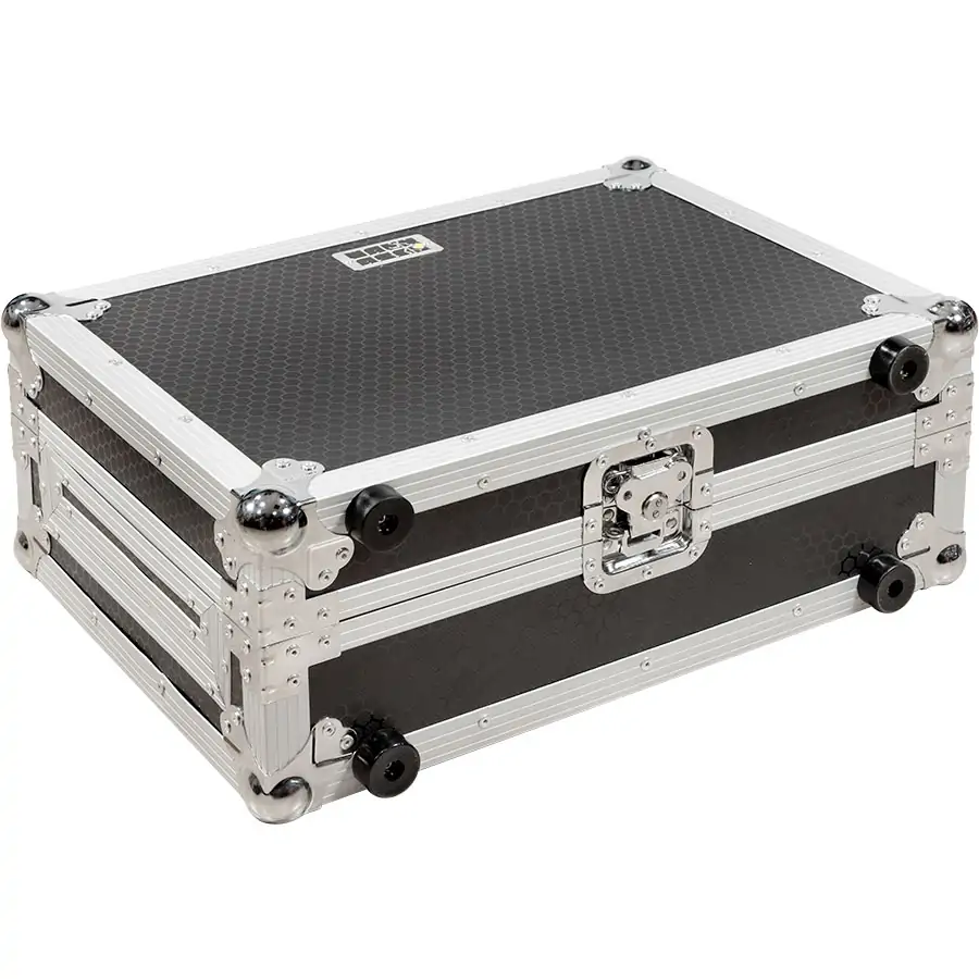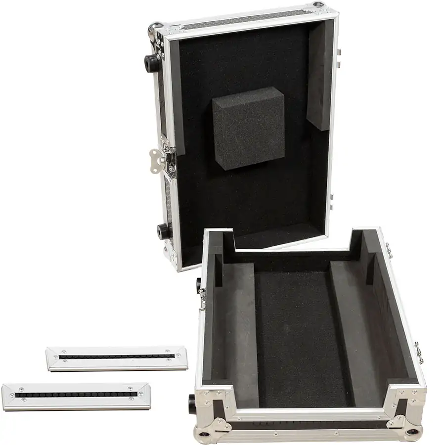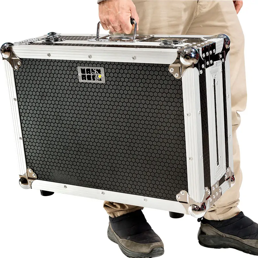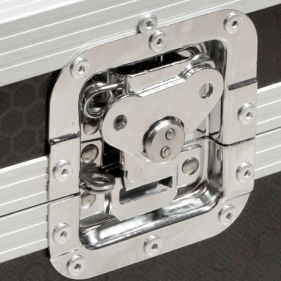 Nuestros modelos están fabricados con contrachapado resistente de 9 mm de grosor y recubiertos con un laminado exterior en acabado negro antideslizante con diseño hexagonal tipo panal de abeja, pensado para resistir las condiciones más exigentes en giras y escenarios. El interior está completamente protegido con espuma EVA de alta densidad, que garantiza la máxima absorción de impactos y protege tu equipo frente a golpes, polvo y rayaduras. Un diseño robusto y elegante que combina perfectamente funcionalidad y estilo. Cada flight case Walkasse incorpora perfiles de aluminio anodizado de alta resistencia y esquinas redondeadas reforzadas, lo que asegura una durabilidad superior y una estética profesional impecable con el paso del tiempo.
