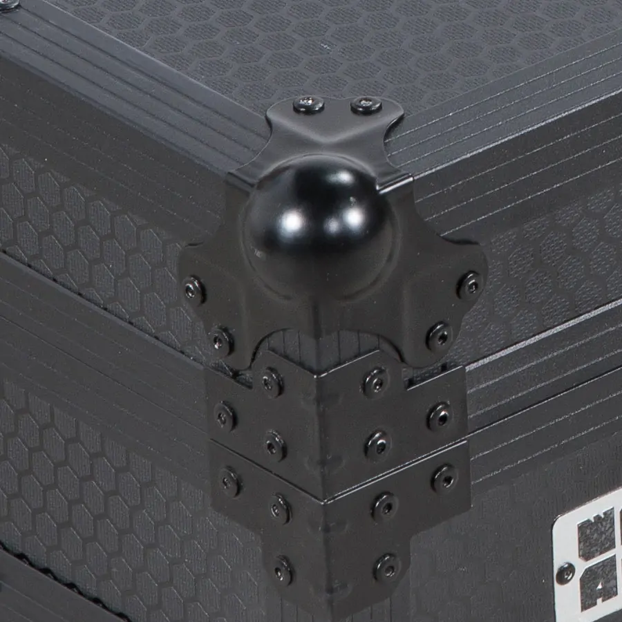 Cada flight case Walkasse incorpora perfiles de aluminio anodizado de alta resistencia y esquinas redondeadas reforzadas, lo que asegura una durabilidad superior y una estética profesional impecable con el paso del tiempo.