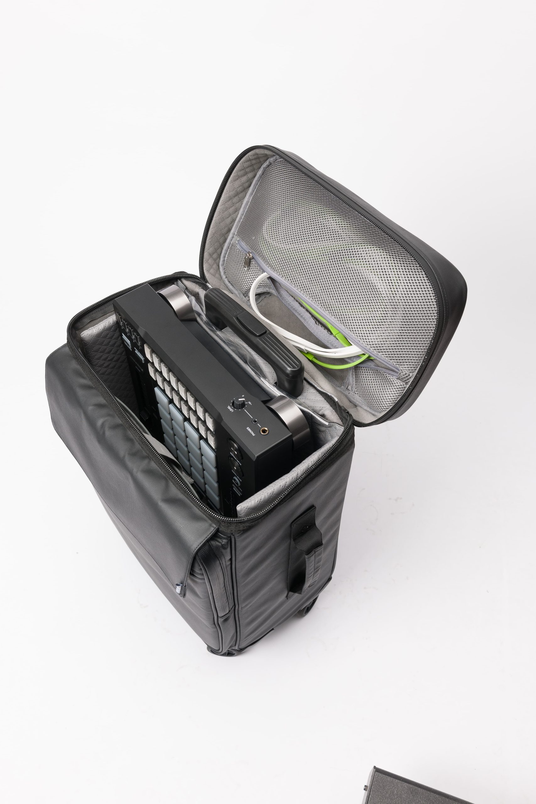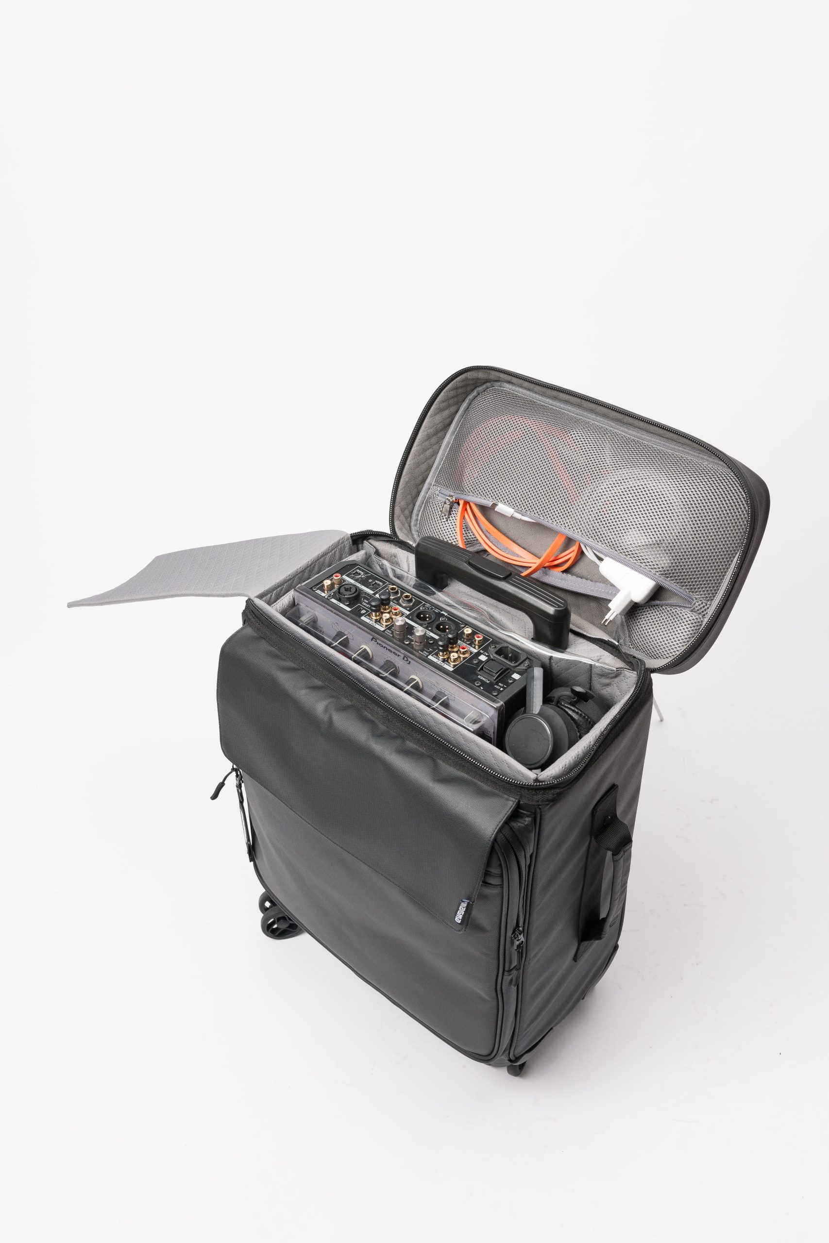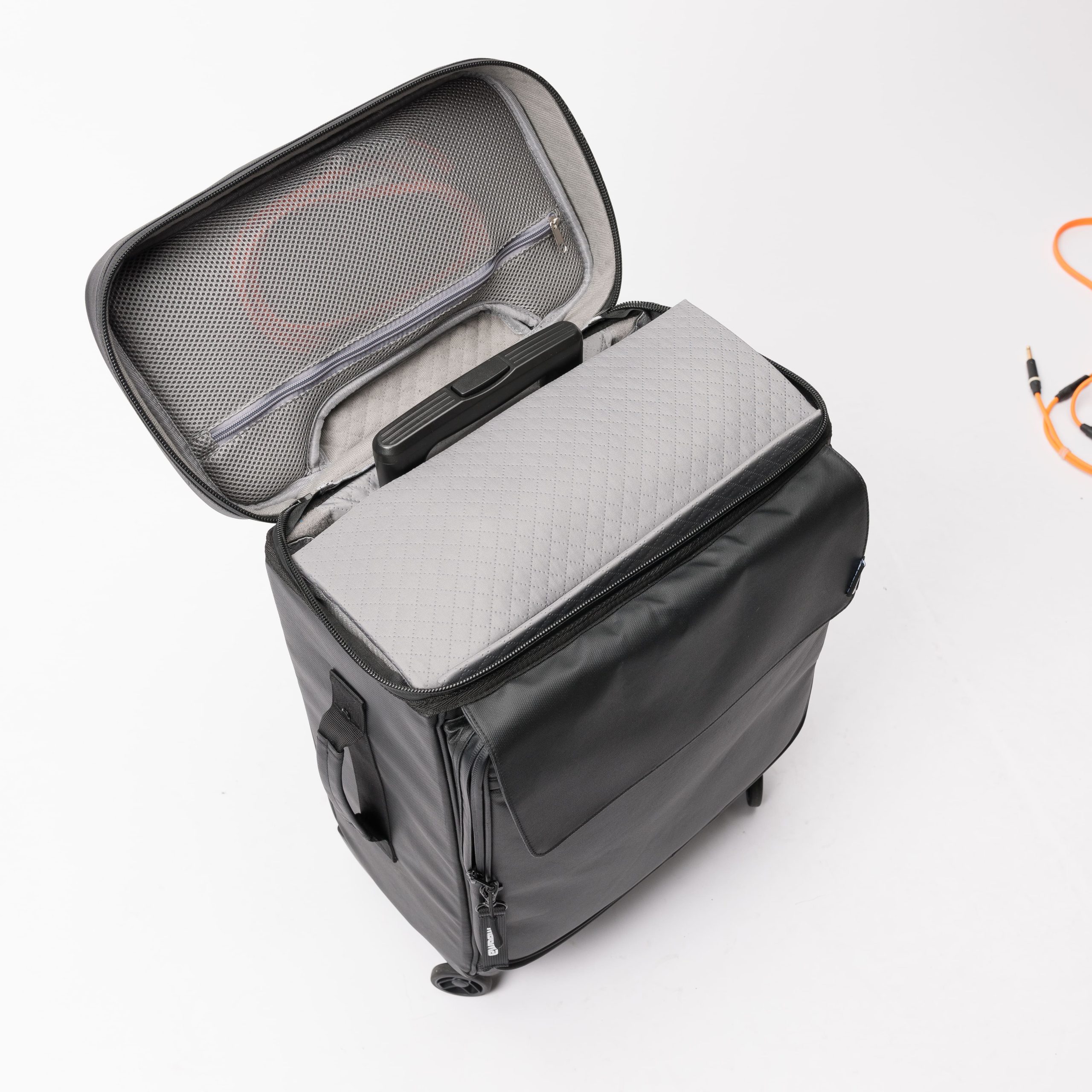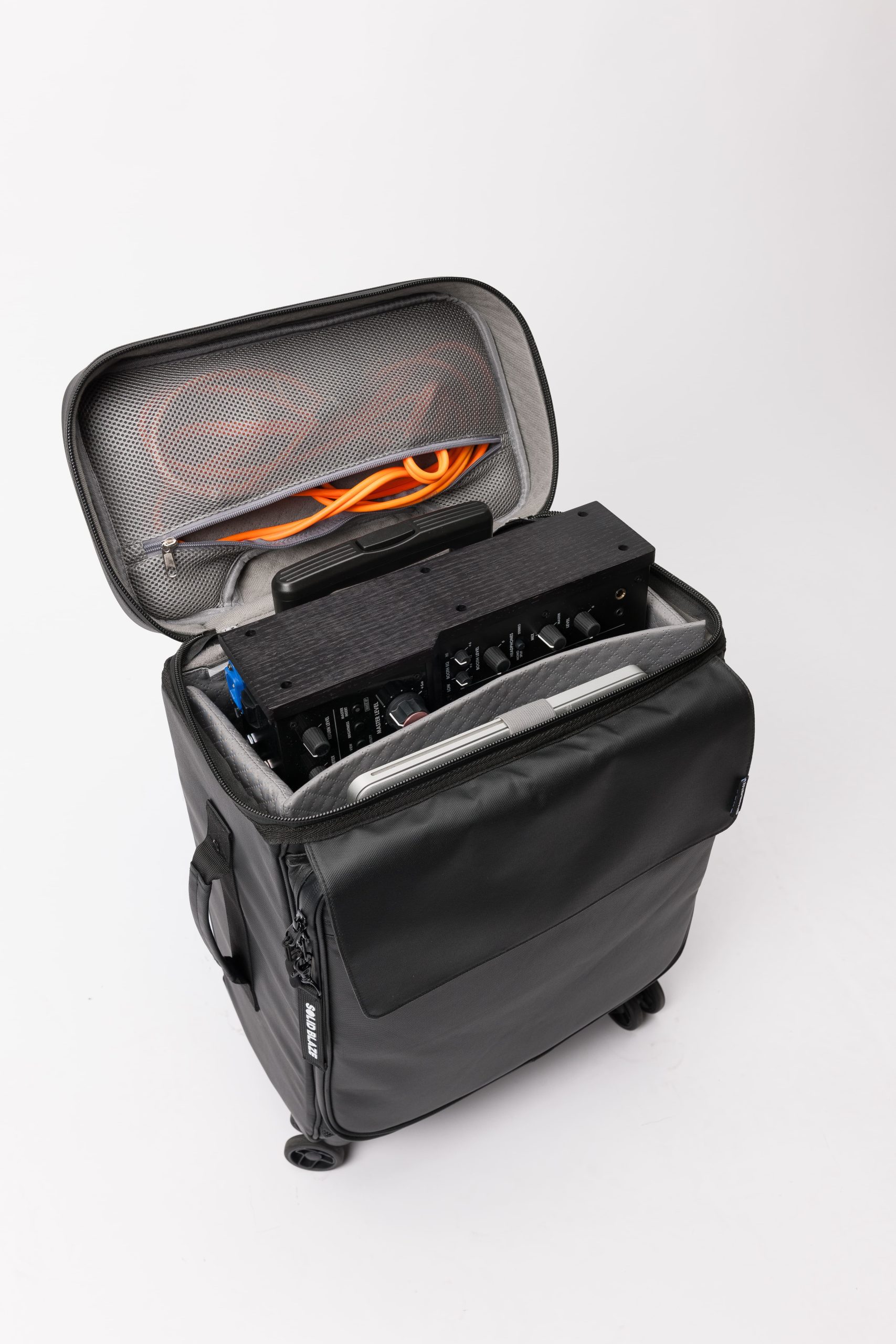 El carrito de MAGMA SOLID BLAZE CABIN-TROLLEY permite a los DJ y productores musicales desplazarse fácilmente por aeropuertos, estaciones de tren y más mientras viajan a conciertos. Transporte de forma segura equipos esenciales como computadoras portátiles, mezcladores, samplers de batería, controladores DAW y discos de 12″ con facilidad.
