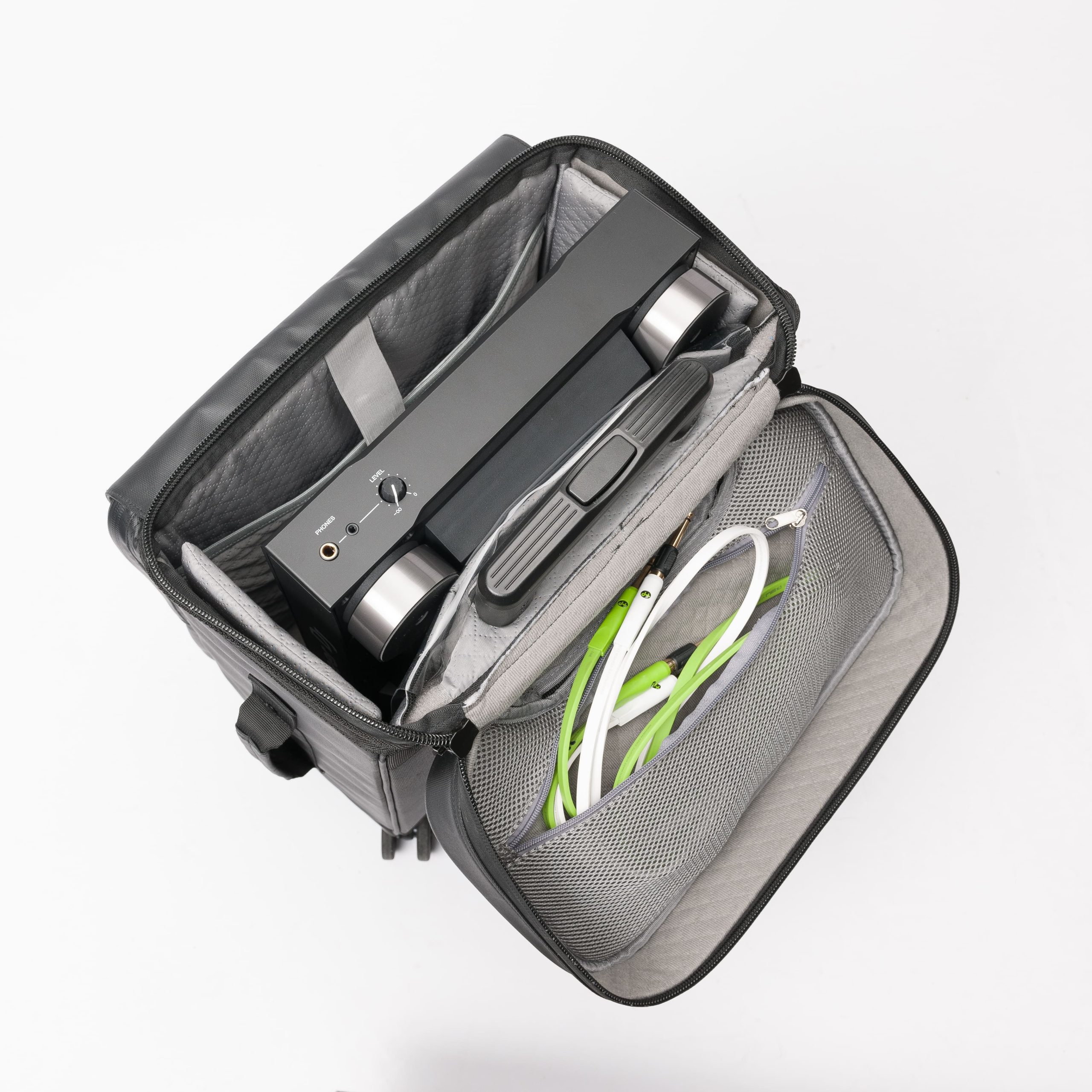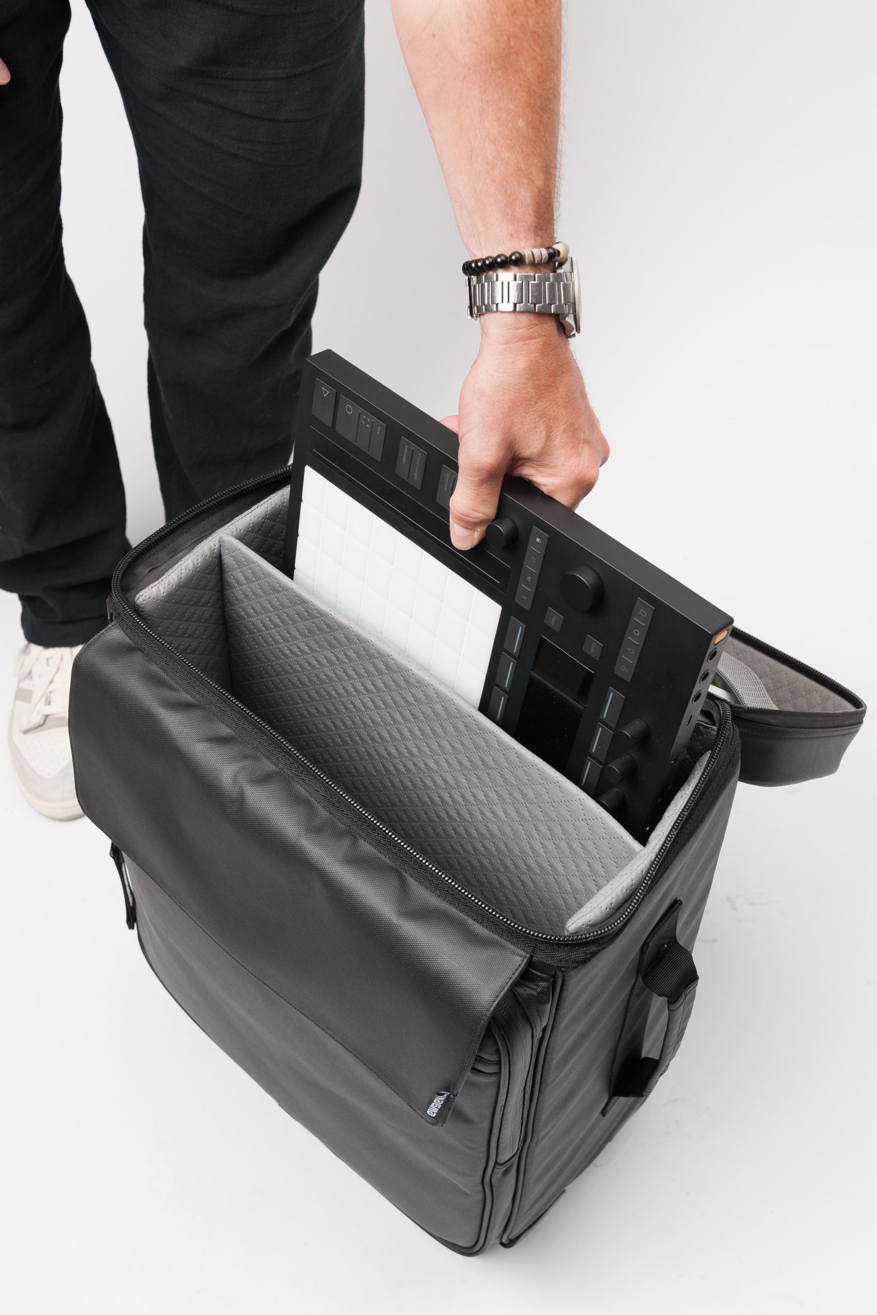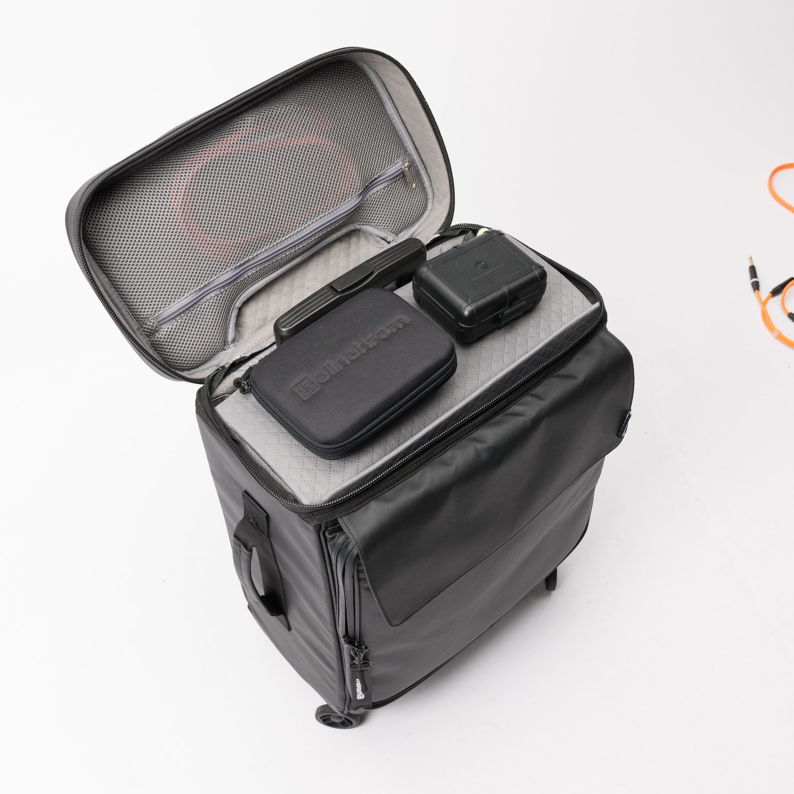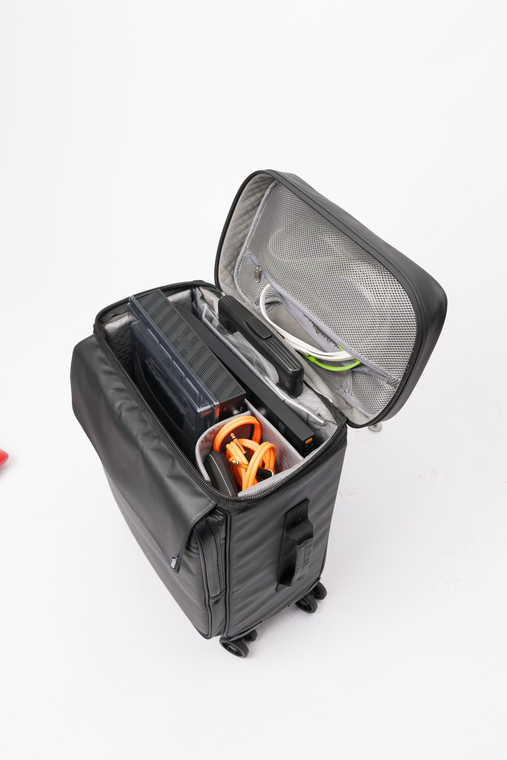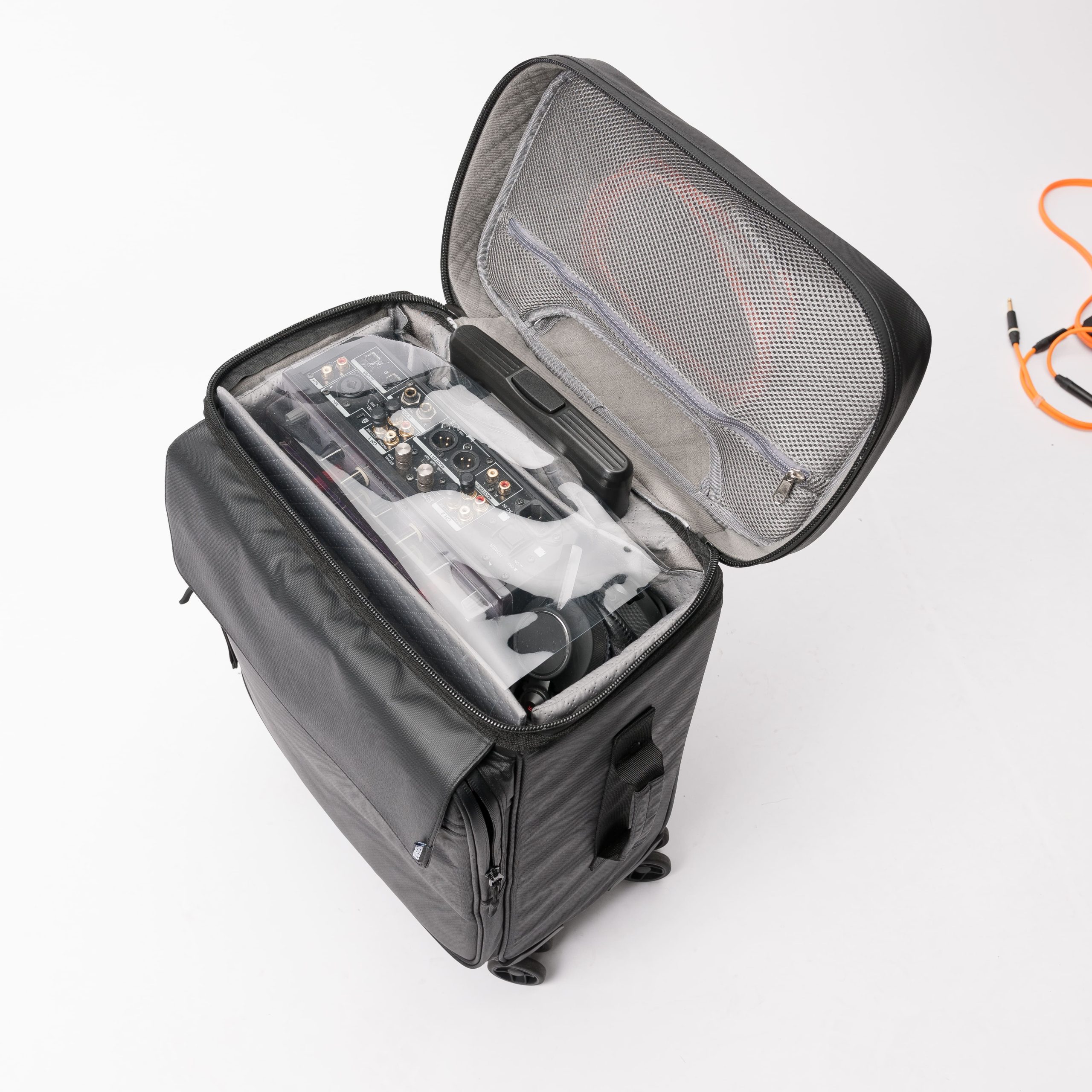 El carrito de MAGMA SOLID BLAZE CABIN-TROLLEY permite a los DJ y productores musicales desplazarse fácilmente por aeropuertos, estaciones de tren y más mientras viajan a conciertos. Transporte de forma segura equipos esenciales como computadoras portátiles, mezcladores, samplers de batería, controladores DAW y discos de 12″ con facilidad.