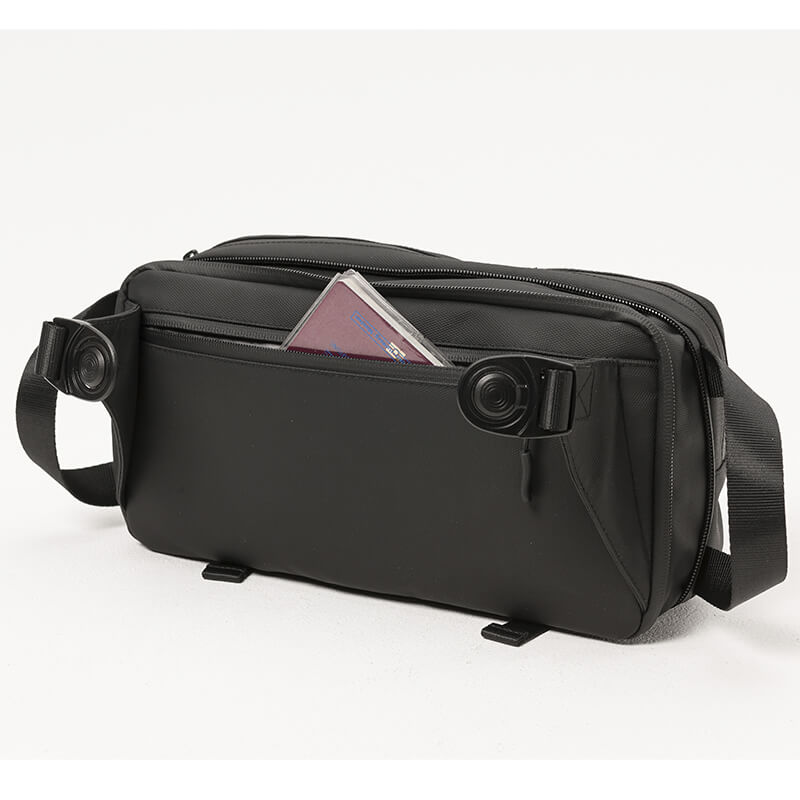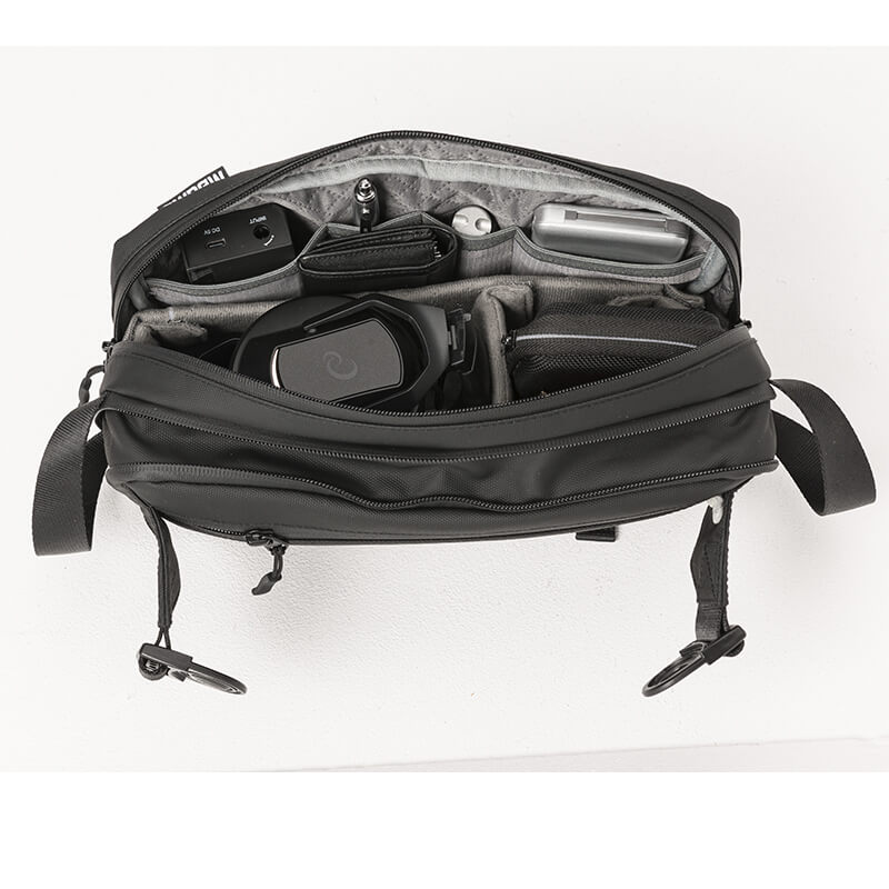 Tiene capacidad para elementos esenciales como auriculares, unidades USB, bancos de energía, cámaras y artículos personales, con un diseño interno inteligente que incluye múltiples compartimentos, dos bolsillos exteriores de acceso rápido y divisores acolchados y extraíbles para una protección personalizable.
