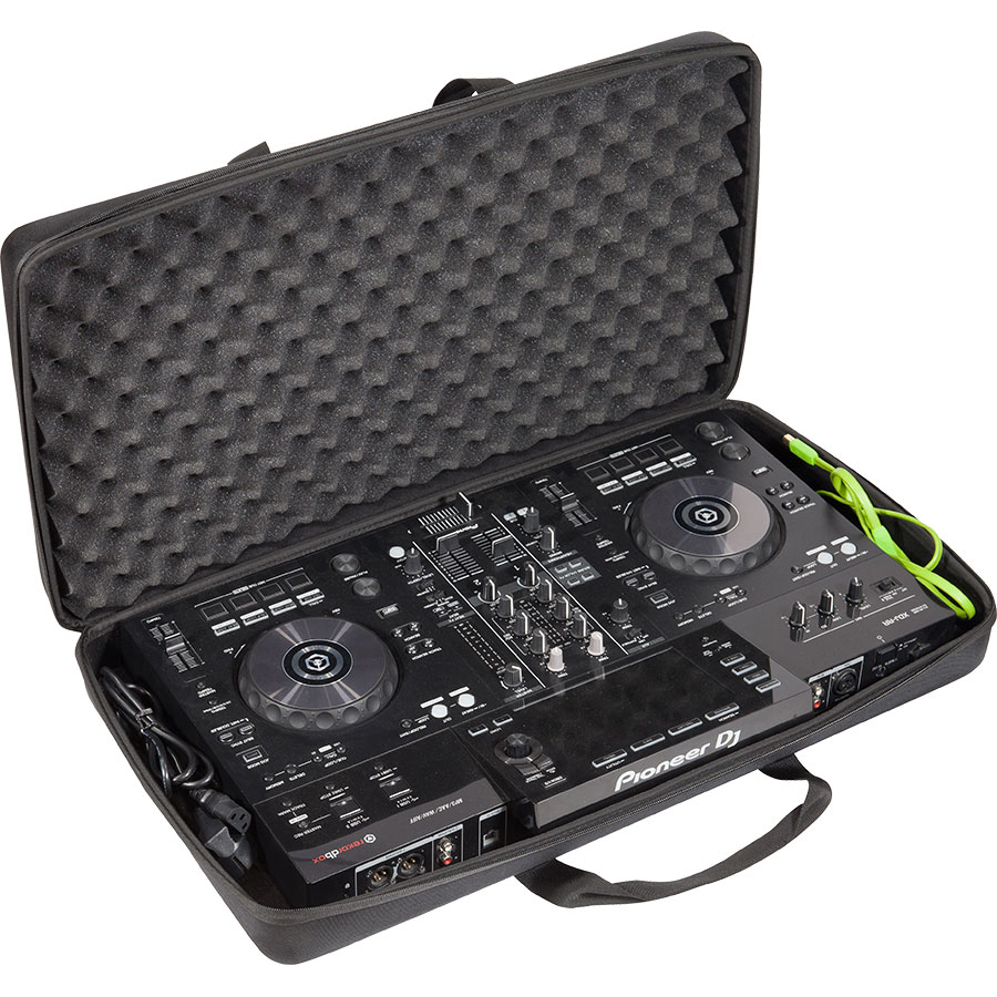 Maleta rígida está fabricada en EVA moldeado por compresión a prueba de golpes y con acabado exterior en nylon balístico 1680D tela impermeable capa de PU que la protege de líquido, rozaduras y caídas. Una solución duradera para tu Pioneer®XDJ-RR