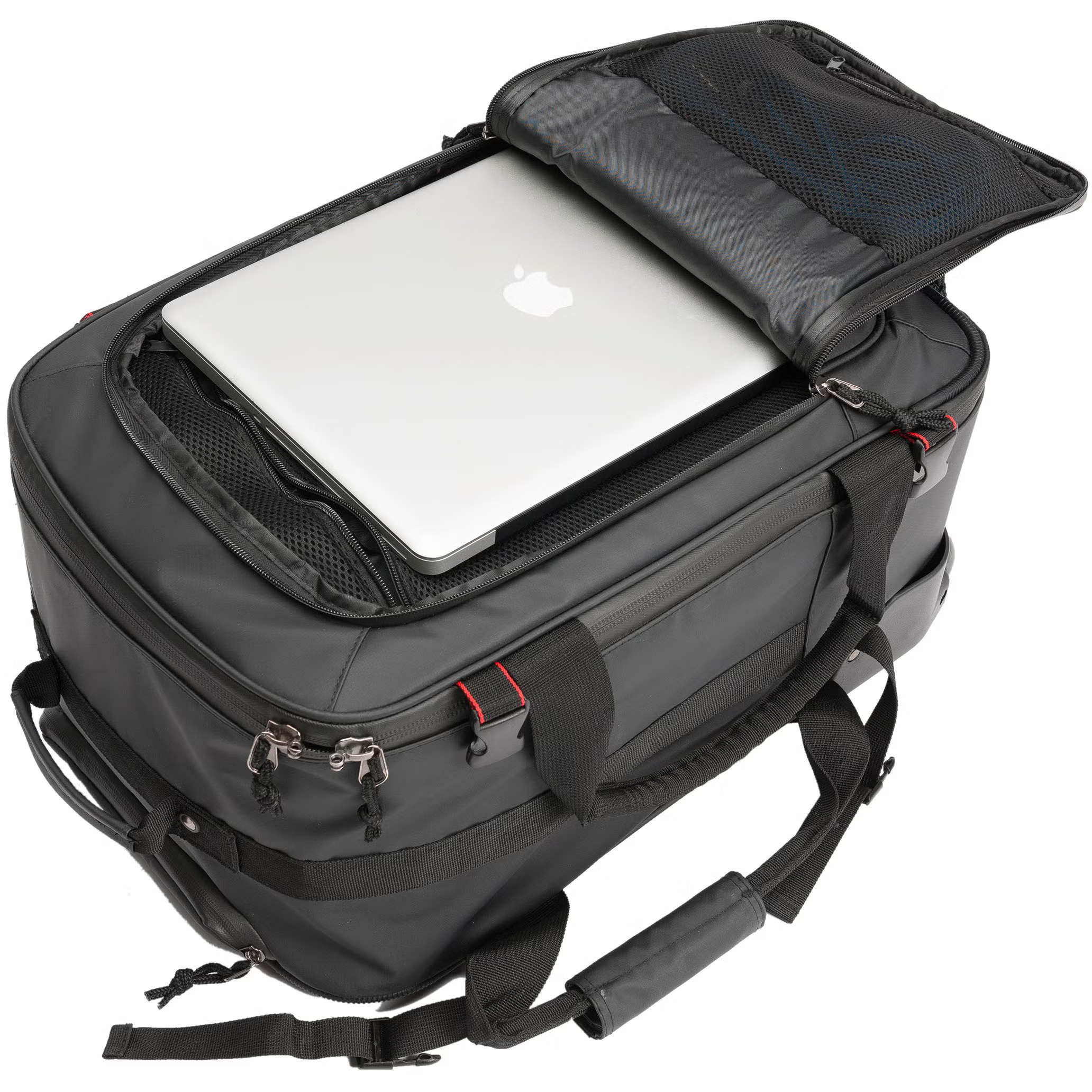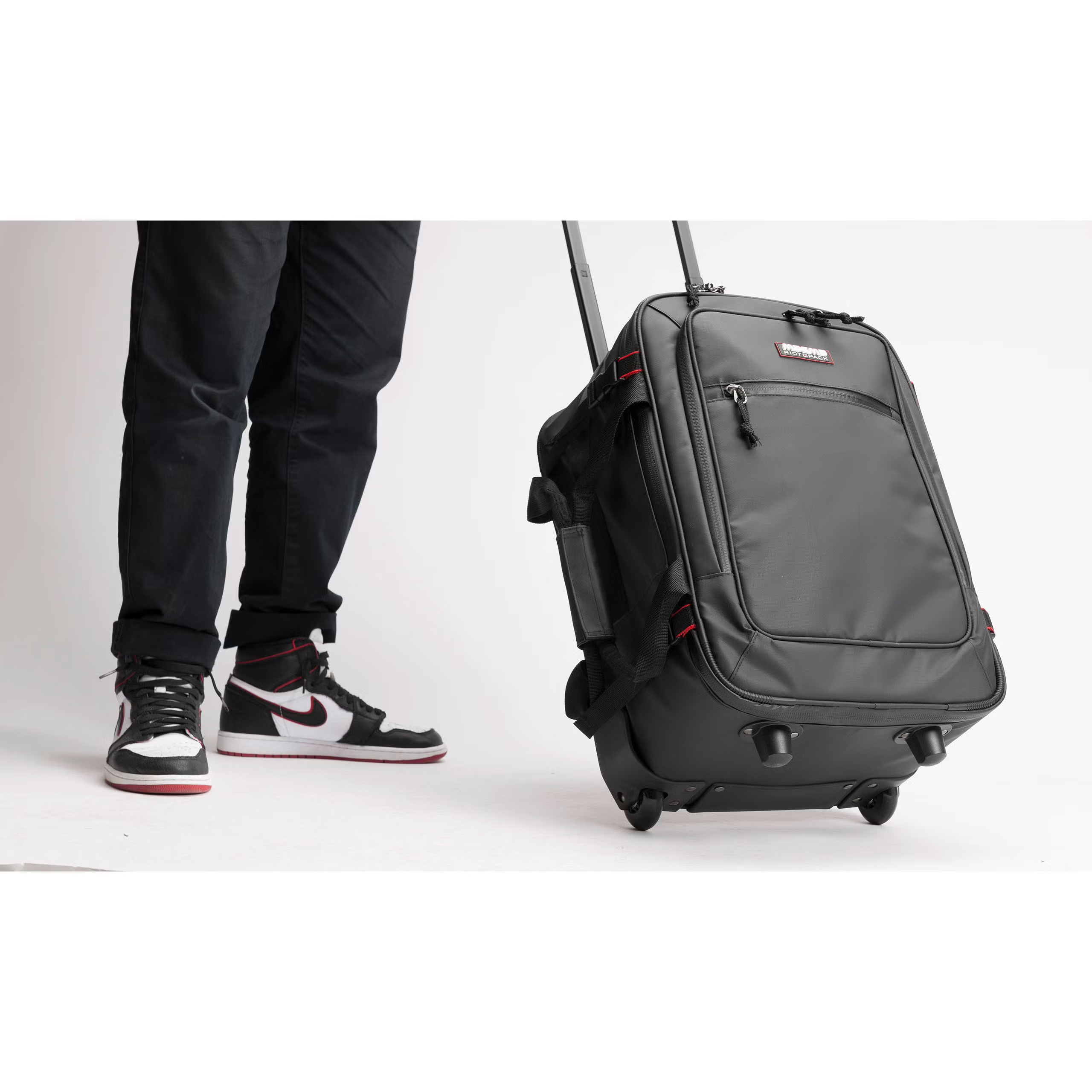 Fabricado únicamente con materiales de la más alta calidad, como lona RIOT resistente al agua, un mango telescópico resistente y ruedas en línea de precisión de rodamiento suave para proteger su valiosa inversión.