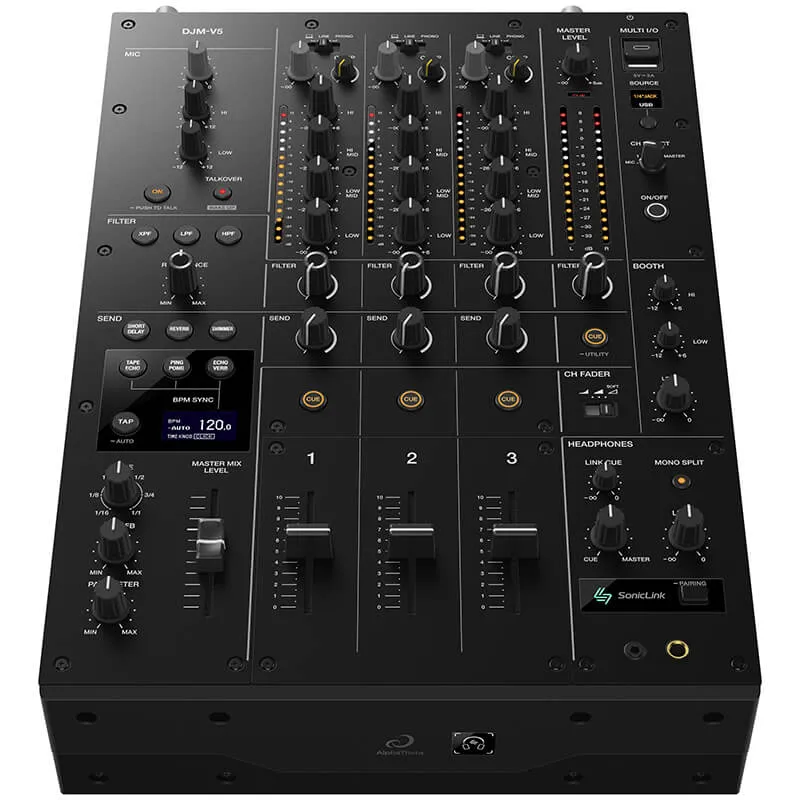 Basado en la última arquitectura de audio de AlphaTheta, el DJM-V5 combina una calidad de sonido excepcional con una conectividad avanzada, que incluye USB-C Multi I/O y monitorización inalámbrica SonicLink de latencia ultrabaja.