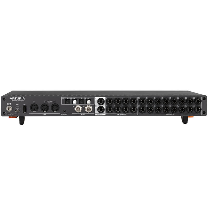 - E/S analógicas y digitales de alta densidad en sólo 1 unidad de rack. Esto te permite dejar tus sintetizadores favoritos y hardware de estudio conectados y listos para grabar en cualquier momento.