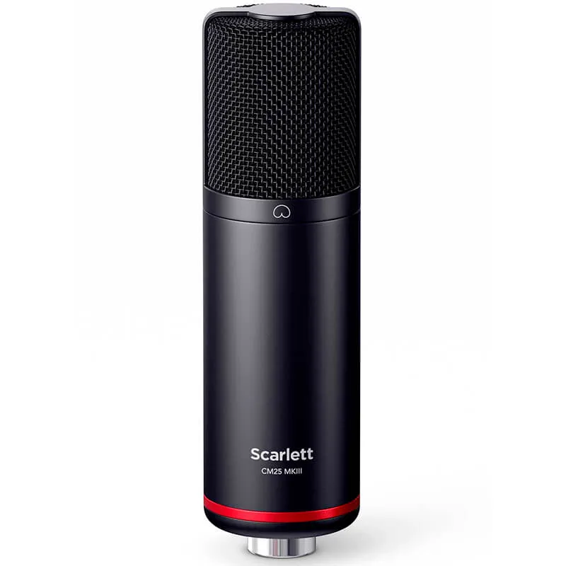 Todo está incluido en este paquete completo. La Scarlett 2i2 Studio viene con nuestro micrófono de condensador CM25 MkIII de calidad profesional y unos auriculares cerrados SH-450. El versátil CM25 MkIII es perfecto para diversas aplicaciones, pero destaca especialmente al capturar voces y guitarras gracias a su excepcional claridad y detalle.