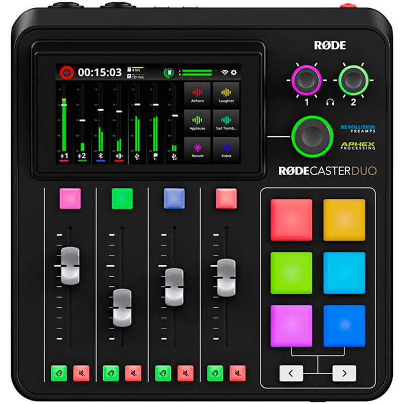 RODE RODECASTER DUO es la solución de audio compacta definitiva para creadores de podcasts y contenidos. Al combinar características revolucionarias con una calidad de sonido superior, una personalización infinita y una facilidad de uso inigualable, el RØDECaster Duo es todo lo que necesitarás para grabar un audio increíble para tus contenidos.