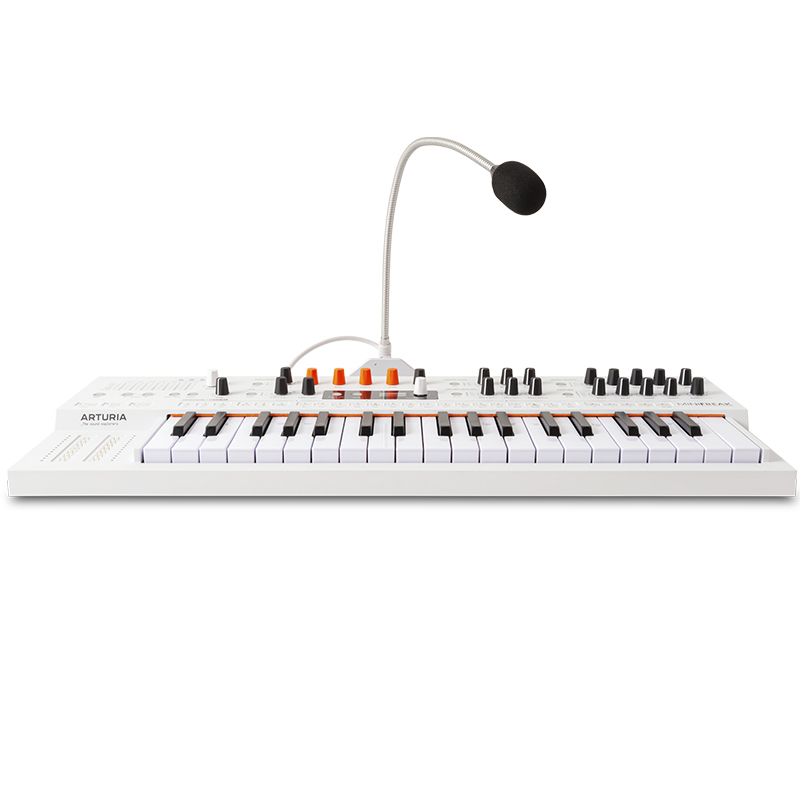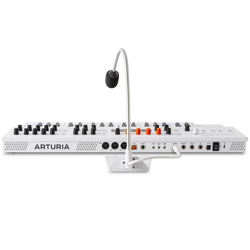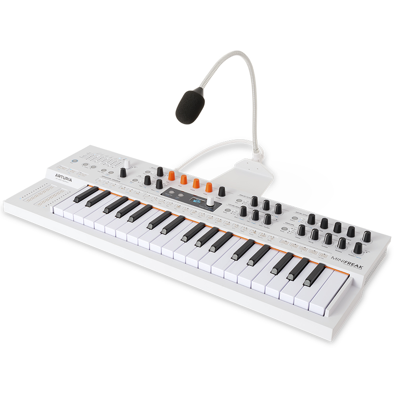 Sintetizador Arturia MiniFreak Vocoder Edition. incorpora un potente vocoder de 16 bandas y un micrófono de cuello de ganso desmontable
