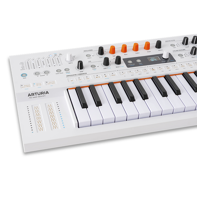 La expresividad está garantizada con su teclado de 37 teclas sensibles a la velocidad y postpulsación. Y si te gusta improvisar, disfrutarás de su secuenciador de 64 pasos, arpegiador con funciones avanzadas, y una interfaz intuitiva con pantalla OLED.