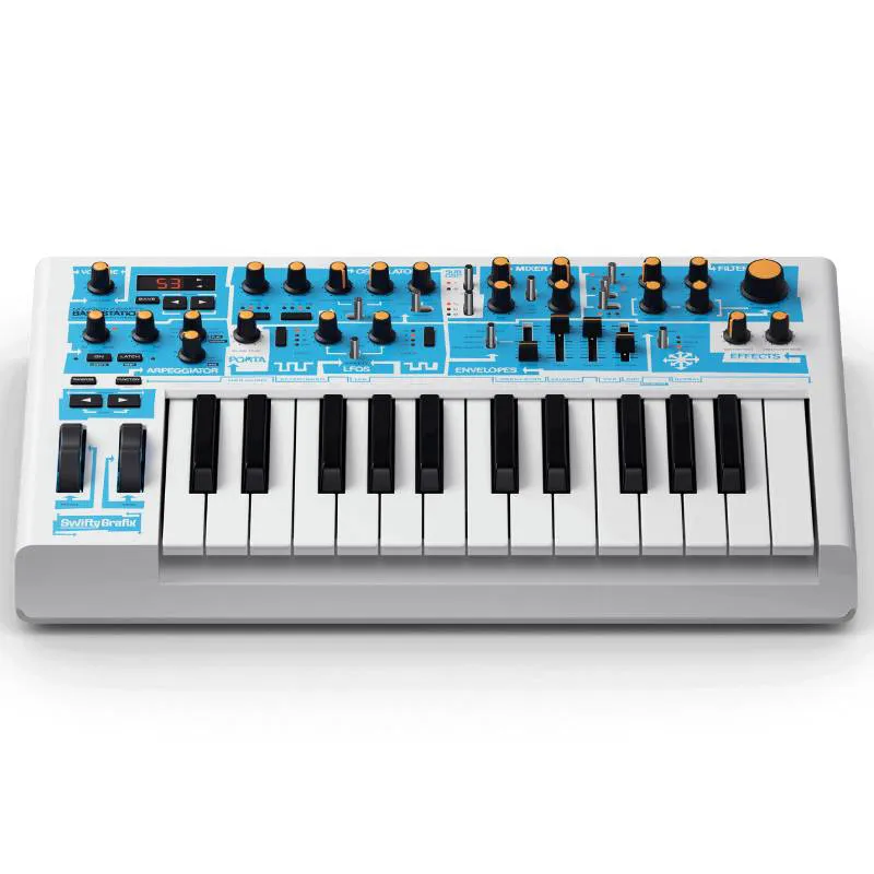 Si no conoces a Swifty, seguramente conocerás su trabajo. Este diseñador gráfico, responsable de algunas de las discográficas y revistas más influyentes de la historia musical de su país, ha diseñado esta edición única y limitada en color azul y blanco de un icónico sintetizador británico.