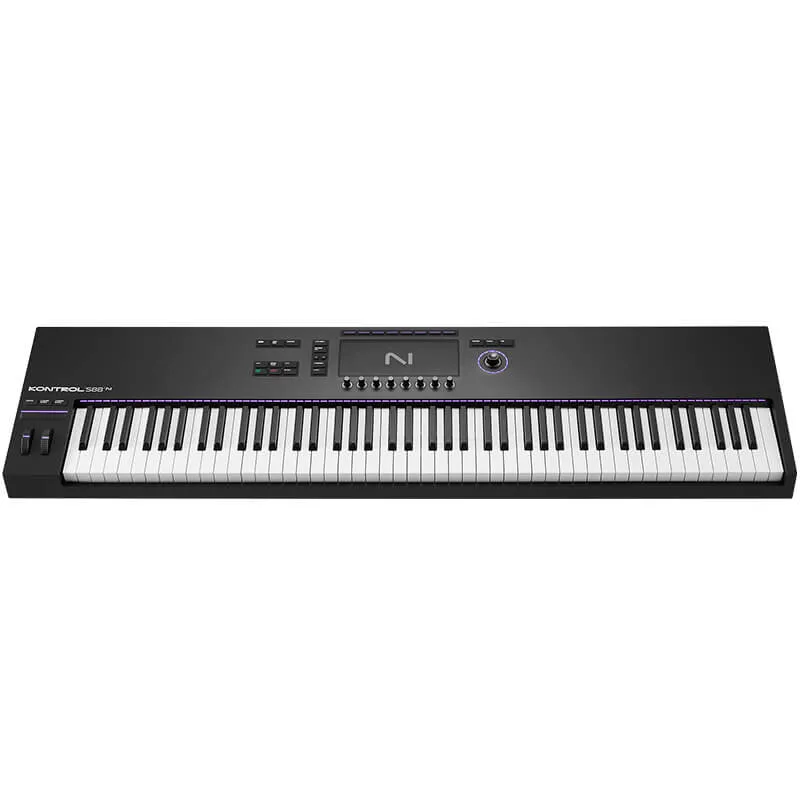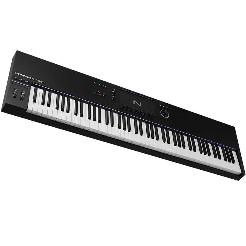 NATIVE INSTRUMENTS KONTROL S88 MK3 es un controlador de teclado MIDI de 88 teclas. Fluye con una conexión intuitiva a instrumentos, efectos y tu DAW, además de una navegación inmersiva en pantalla de alta resolución. Elige entre 49 o 61 teclas semi contrapesadas, u 88 teclas de acción de martillo totalmente contrapesadas, todas con post pulsación polifónica de serie.